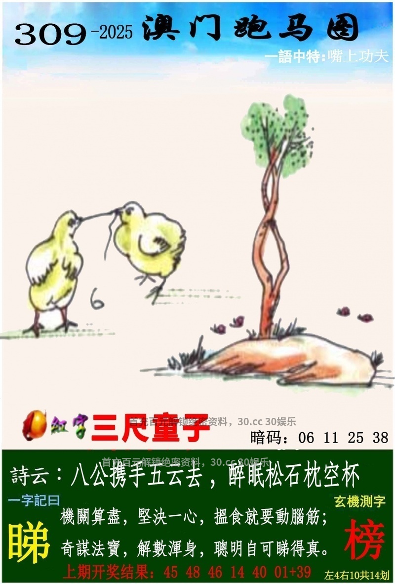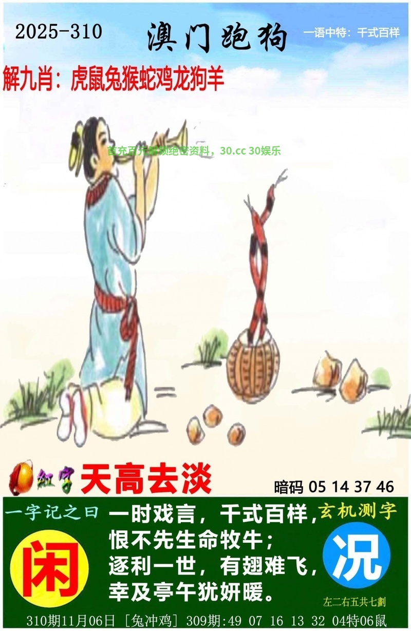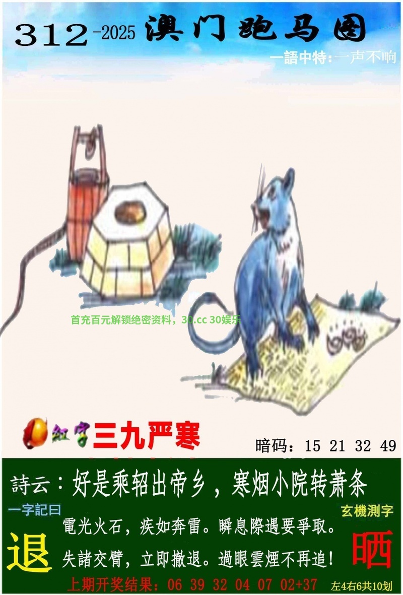 公证处四字玄机:第309期{开:鼠06中} 【贼眉鼠眼】 综合解肖:马猪虎鼠牛猴 |