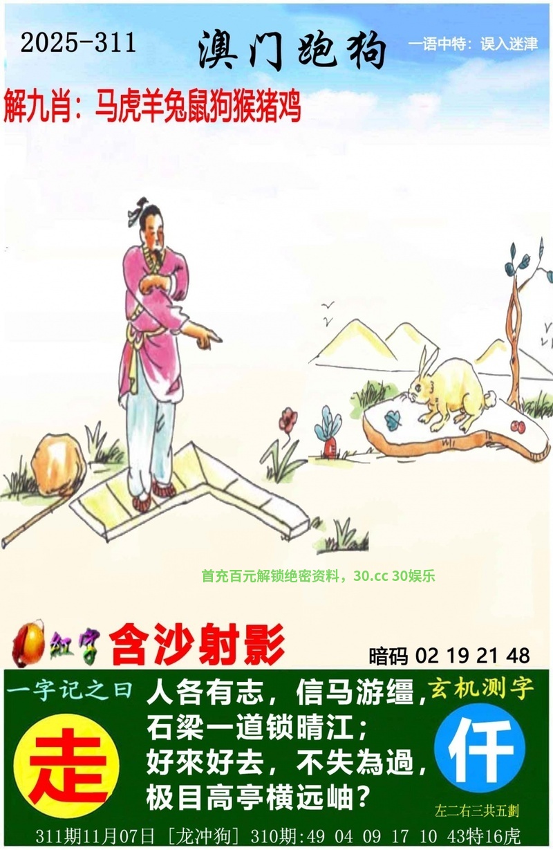 公证处四字玄机:第308期{开:兔39中} 【马不停蹄】 综合解肖:猴鼠蛇鸡兔狗 |